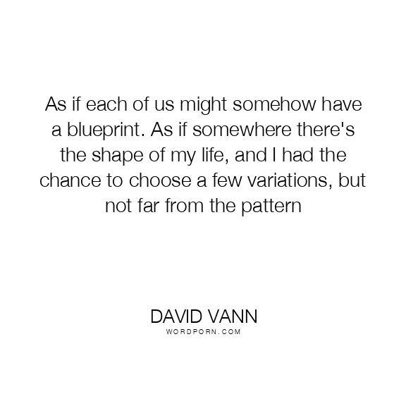 As if each of us might somehow have a blueprint. As if somewhere there's the shape of my life, and I had the chance to choose a few variations, but not far from the pattern