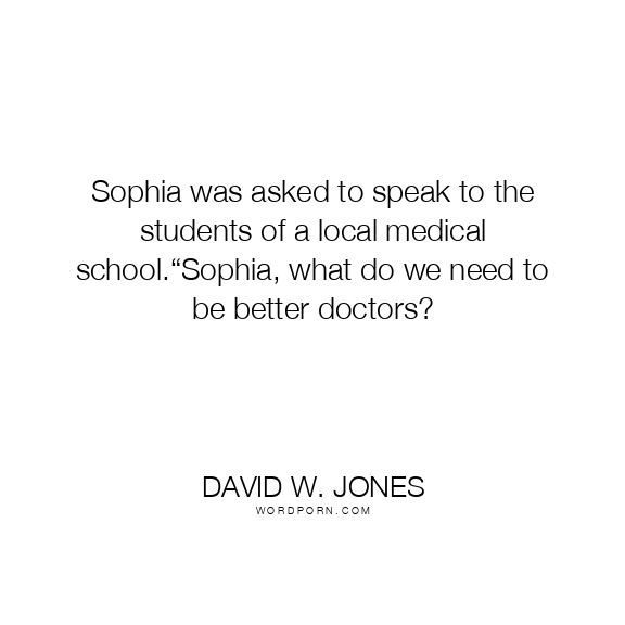 Sophia was asked to speak to the students of a local medical school.“Sophia, what do we need to be better doctors?