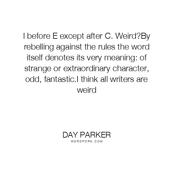I before E except after C. Weird?By rebelling against the rules the word itself denotes its very meaning: of strange or extraordinary character, odd, fantastic.I think all writers are weird