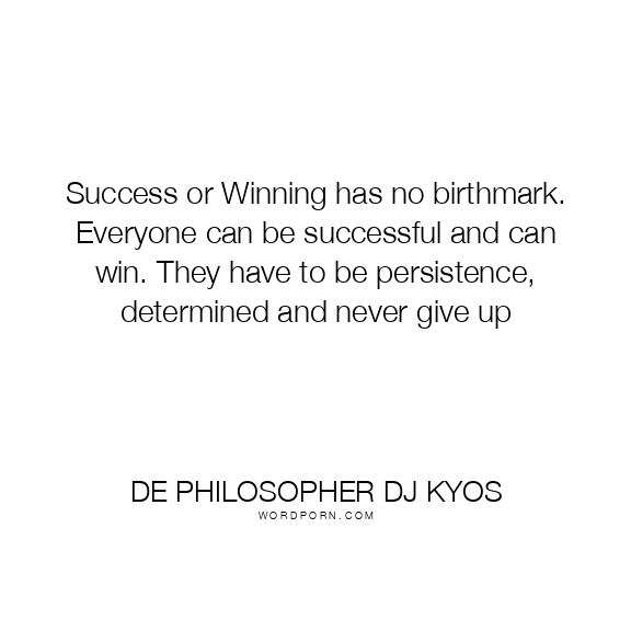 Success or Winning has no birthmark. Everyone can be successful and can win. They have to be persistence, determined and never give up