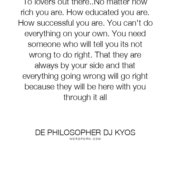 To lovers out there..No matter how rich you are. How educated you are. How successful you are. You can't do everything on your own. You need someone who will tell you its not wrong to do right. That they are always by your side and that everything going wrong will go right because they will be here with you through it all