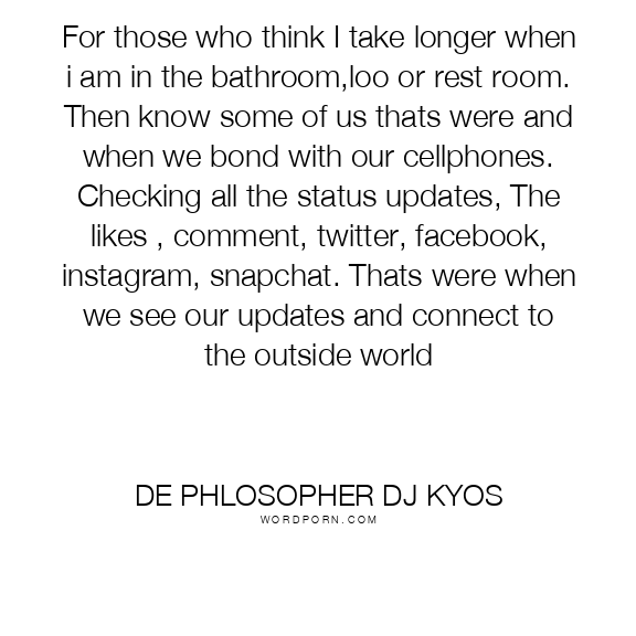 For those who think I take longer when i am in the bathroom,loo or rest room. Then know some of us thats were and when we bond with our cellphones. Checking all the status updates, The likes , comment, twitter, facebook, instagram, snapchat. Thats were when we see our updates and connect to the outside world