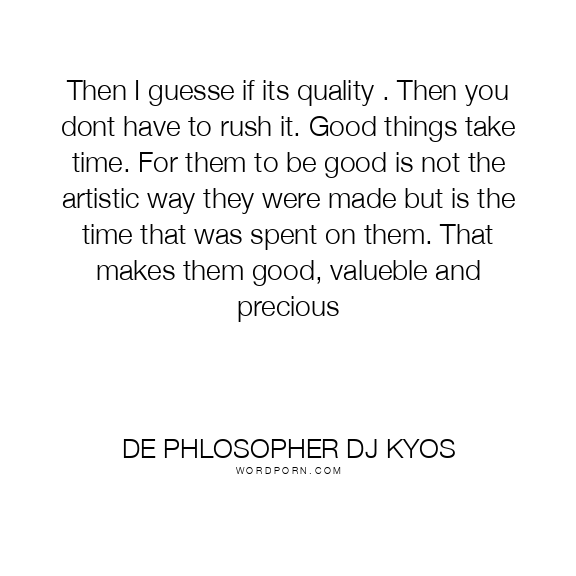 Then I guesse if its quality . Then you dont have to rush it. Good things take time. For them to be good is not the artistic way they were made but is the time that was spent on them. That makes them good, valueble and precious