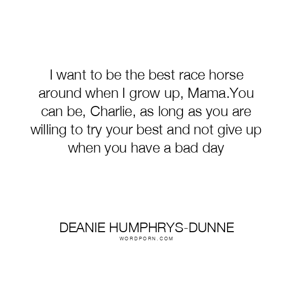 I want to be the best race horse around when I grow up, Mama.You can be, Charlie, as long as you are willing to try your best and not give up when you have a bad day