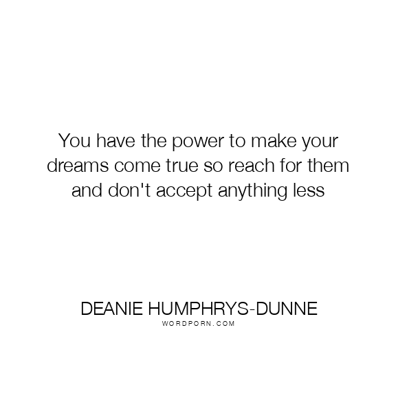 You have the power to make your dreams come true so reach for them and don't accept anything less