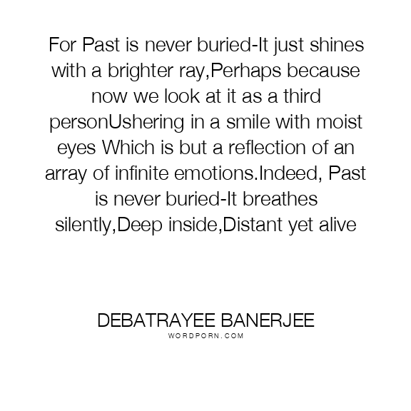 For Past is never buried-It just shines with a brighter ray,Perhaps because now we look at it as a third personUshering in a smile with moist eyes Which is but a reflection of an array of infinite emotions.Indeed, Past is never buried-It breathes silently,Deep inside,Distant yet alive