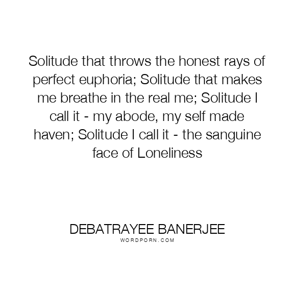 Solitude that throws the honest rays of perfect euphoria; Solitude that makes me breathe in the real me; Solitude I call it - my abode, my self made haven; Solitude I call it - the sanguine face of Loneliness