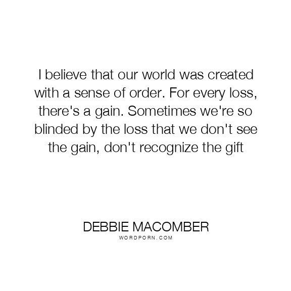 I believe that our world was created with a sense of order. For every loss, there's a gain. Sometimes we're so blinded by the loss that we don't see the gain, don't recognize the gift