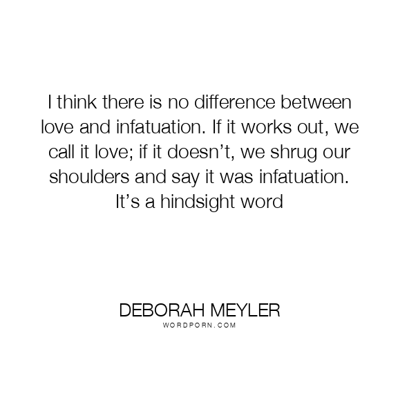 I think there is no difference between love and infatuation. If it works out, we call it love; if it doesn’t, we shrug our shoulders and say it was infatuation. It’s a hindsight word