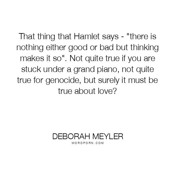 That thing that Hamlet says - "there is nothing either good or bad but thinking makes it so". Not quite true if you are stuck under a grand piano, not quite true for genocide, but surely it must be true about love?