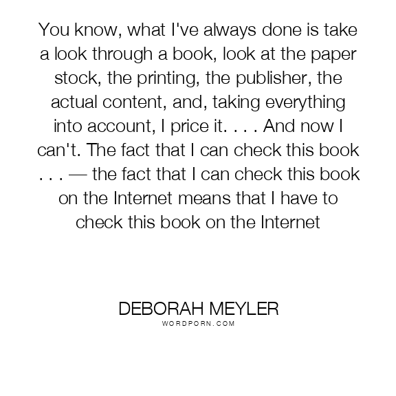 You know, what I've always done is take a look through a book, look at the paper stock, the printing, the publisher, the actual content, and, taking everything into account, I price it. . . . And now I can't. The fact that I can check this book . . . — the fact that I can check this book on the Internet means that I have to check this book on the Internet