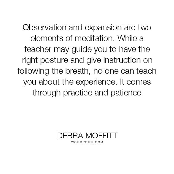 Observation and expansion are two elements of meditation. While a teacher may guide you to have the right posture and give instruction on following the breath, no one can teach you about the experience. It comes through practice and patience