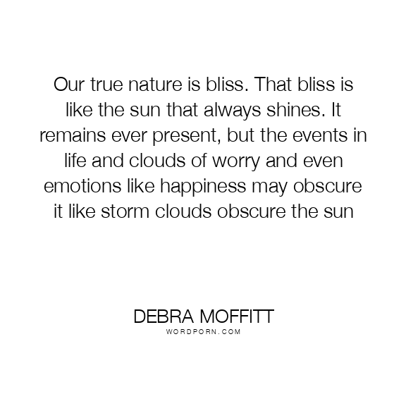 Our true nature is bliss. That bliss is like the sun that always shines. It remains ever present, but the events in life and clouds of worry and even emotions like happiness may obscure it like storm clouds obscure the sun