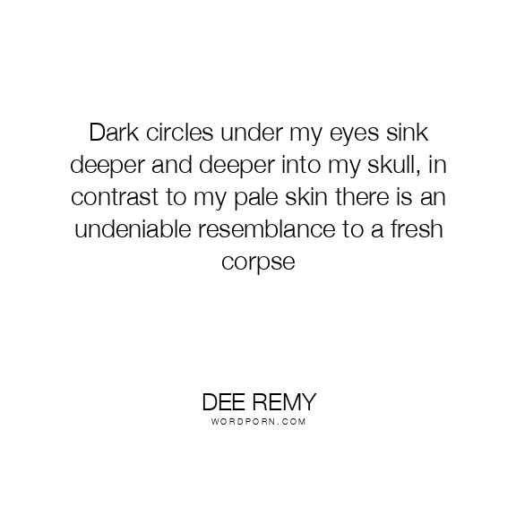 Dark circles under my eyes sink deeper and deeper into my skull, in contrast to my pale skin there is an undeniable resemblance to a fresh corpse