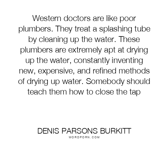 Western doctors are like poor plumbers. They treat a splashing tube by cleaning up the water. These plumbers are extremely apt at drying up the water, constantly inventing new, expensive, and refined methods of drying up water. Somebody should teach them how to close the tap