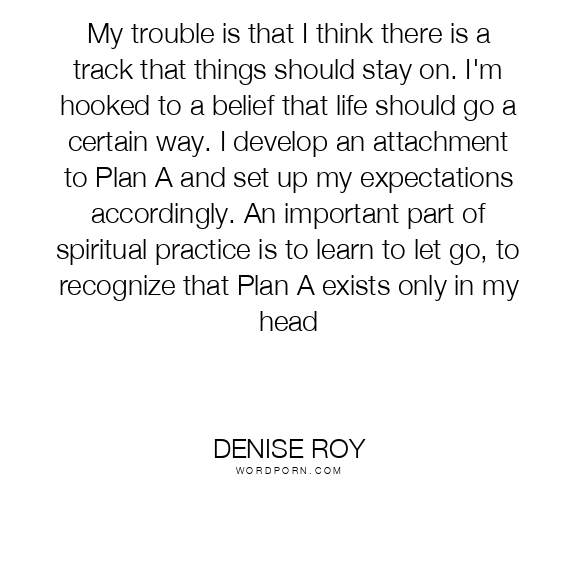 My trouble is that I think there is a track that things should stay on. I'm hooked to a belief that life should go a certain way. I develop an attachment to Plan A and set up my expectations accordingly. An important part of spiritual practice is to learn to let go, to recognize that Plan A exists only in my head