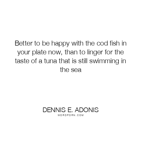 Better to be happy with the cod fish in your plate now, than to linger for the taste of a tuna that is still swimming in the sea