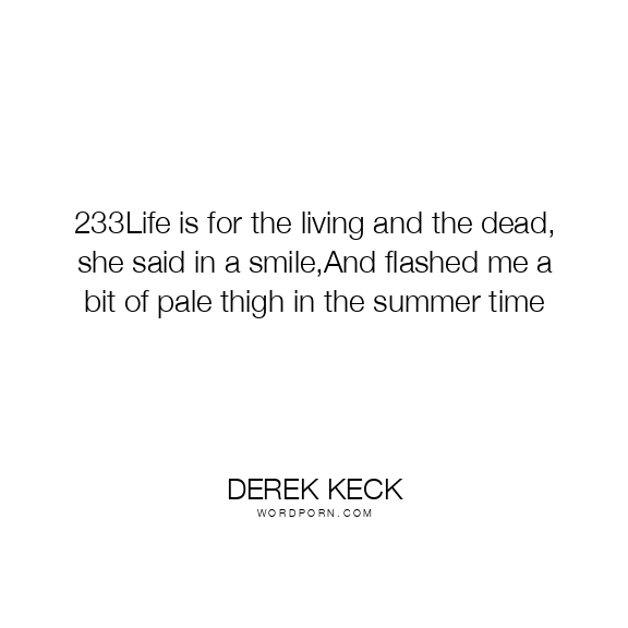 233Life is for the living and the dead, she said in a smile,And flashed me a bit of pale thigh in the summer time