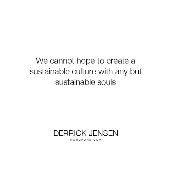 We cannot hope to create a sustainable culture with any but sustainable souls