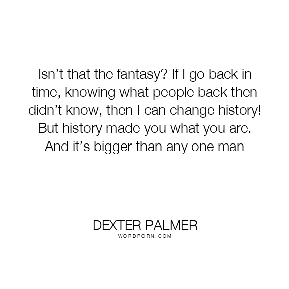 Isn’t that the fantasy? If I go back in time, knowing what people back then didn’t know, then I can change history! But history made you what you are. And it’s bigger than any one man