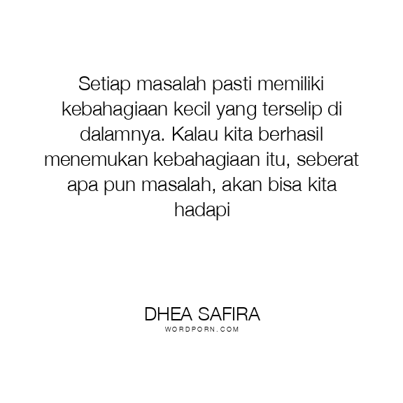 Setiap masalah pasti memiliki kebahagiaan kecil yang terselip di dalamnya. Kalau kita berhasil menemukan kebahagiaan itu, seberat apa pun masalah, akan bisa kita hadapi