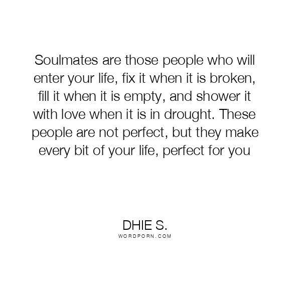 Soulmates are those people who will enter your life, fix it when it is broken, fill it when it is empty, and shower it with love when it is in drought. These people are not perfect, but they make every bit of your life, perfect for you