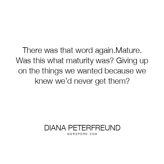There was that word again.Mature. Was this what maturity was? Giving up on the things we wanted because we knew we’d never get them?