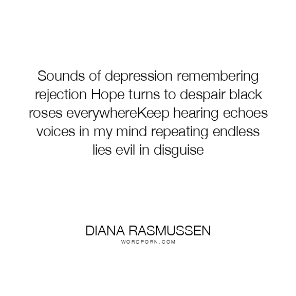 Sounds of depression remembering rejection Hope turns to despair black roses everywhereKeep hearing echoes voices in my mind repeating endless lies evil in disguise