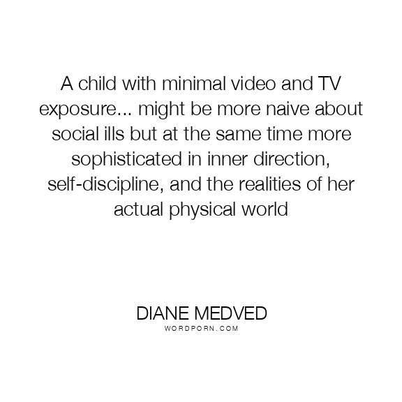 A child with minimal video and TV exposure... might be more naive about social ills but at the same time more sophisticated in inner direction, self-discipline, and the realities of her actual physical world