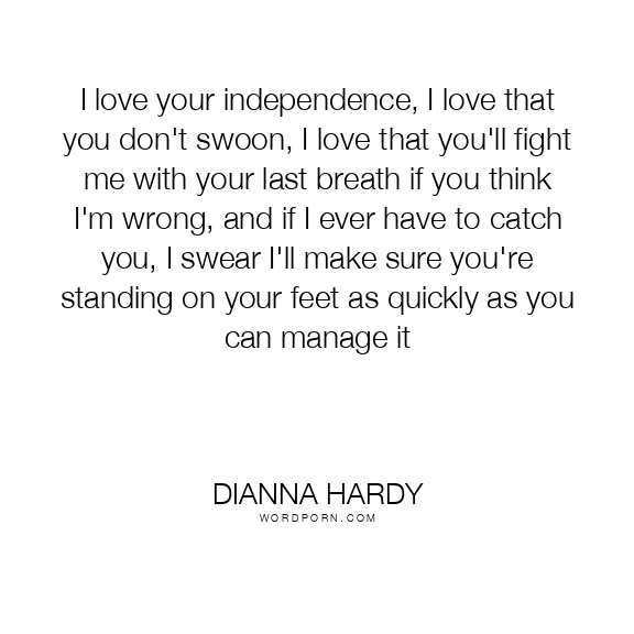 I love your independence, I love that you don't swoon, I love that you'll fight me with your last breath if you think I'm wrong, and if I ever have to catch you, I swear I'll make sure you're standing on your feet as quickly as you can manage it