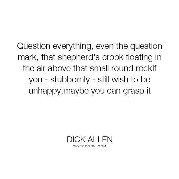 Question everything, even the question mark, that shepherd's crook floating in the air above that small round rockIf you - stubbornly - still wish to be unhappy,maybe you can grasp it