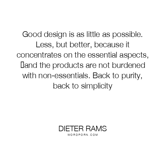 Good design is as little as possible. Less, but better, because it concentrates on the essential aspects, and the products are not burdened with non-essentials. Back to purity, back to simplicity