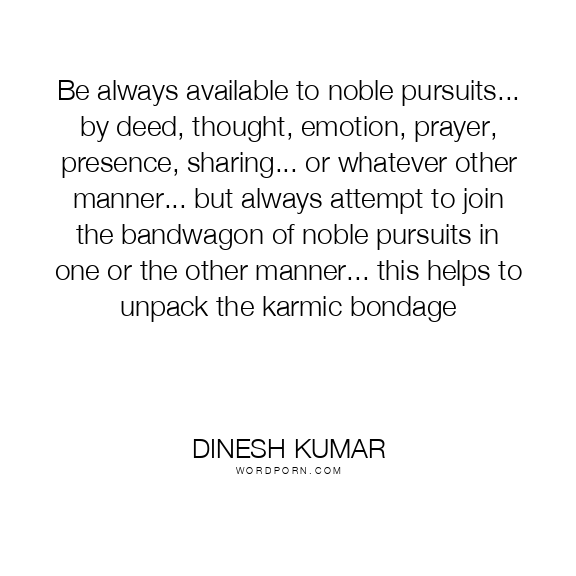 Be always available to noble pursuits... by deed, thought, emotion, prayer, presence, sharing... or whatever other manner... but always attempt to join the bandwagon of noble pursuits in one or the other manner... this helps to unpack the karmic bondage