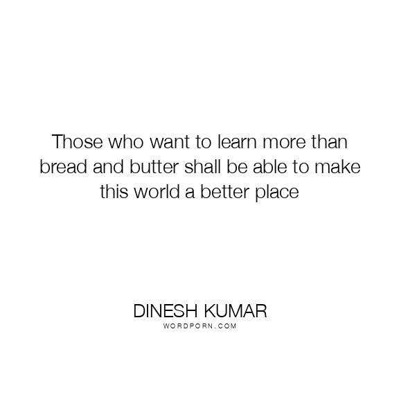 Those who want to learn more than bread and butter shall be able to make this world a better place