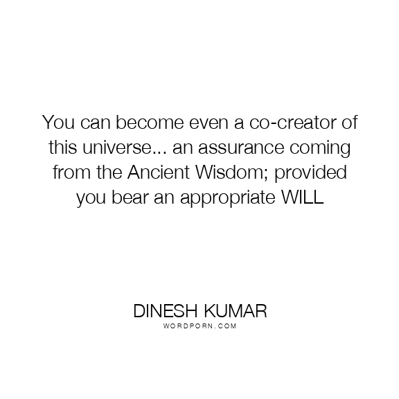 You can become even a co-creator of this universe... an assurance coming from the Ancient Wisdom; provided you bear an appropriate WILL