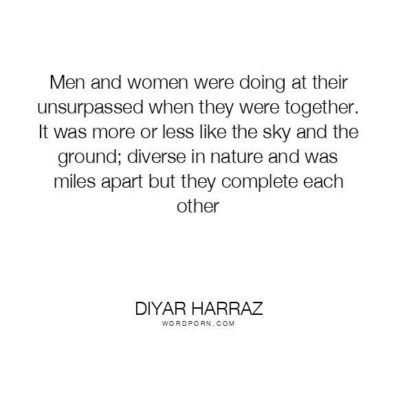 Men and women were doing at their unsurpassed when they were together. It was more or less like the sky and the ground; diverse in nature and was miles apart but they complete each other