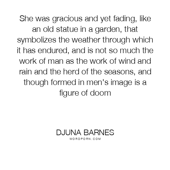 She was gracious and yet fading, like an old statue in a garden, that symbolizes the weather through which it has endured, and is not so much the work of man as the work of wind and rain and the herd of the seasons, and though formed in men's image is a figure of doom
