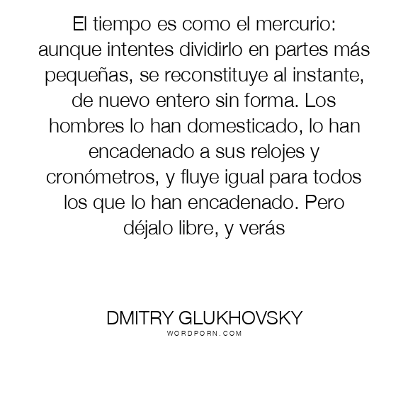 El tiempo es como el mercurio: aunque intentes dividirlo en partes más pequeñas, se reconstituye al instante, de nuevo entero sin forma. Los hombres lo han domesticado, lo han encadenado a sus relojes y cronómetros, y fluye igual para todos los que lo han encadenado. Pero déjalo libre, y verás