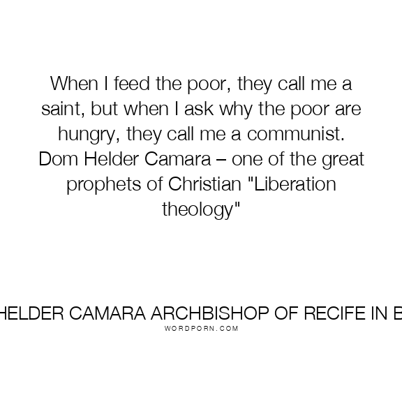 When I feed the poor, they call me a saint, but when I ask why the poor are hungry, they call me a communist. Dom Helder Camara – one of the great prophets of Christian "Liberation theology"