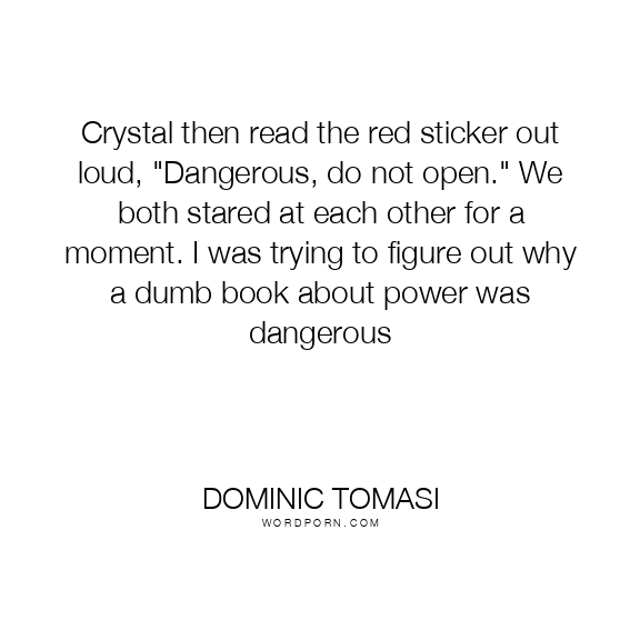 Crystal then read the red sticker out loud, "Dangerous, do not open." We both stared at each other for a moment. I was trying to figure out why a dumb book about power was dangerous
