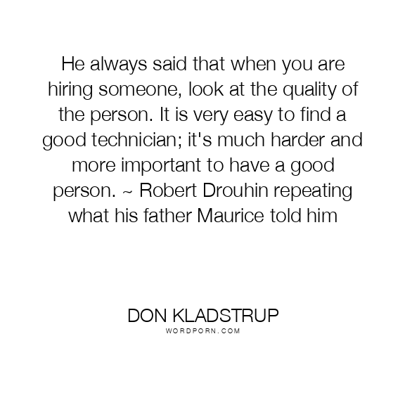 He always said that when you are hiring someone, look at the quality of the person. It is very easy to find a good technician; it's much harder and more important to have a good person. ~ Robert Drouhin repeating what his father Maurice told him