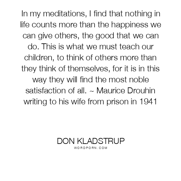 In my meditations, I find that nothing in life counts more than the happiness we can give others, the good that we can do. This is what we must teach our children, to think of others more than they think of themselves, for it is in this way they will find the most noble satisfaction of all. ~ Maurice Drouhin writing to his wife from prison in 1941