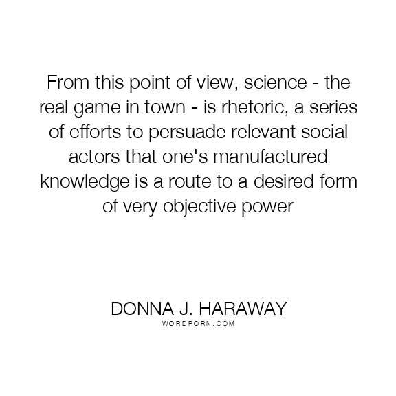 From this point of view, science - the real game in town - is rhetoric, a series of efforts to persuade relevant social actors that one's manufactured knowledge is a route to a desired form of very objective power