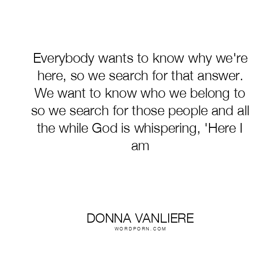 Everybody wants to know why we're here, so we search for that answer. We want to know who we belong to so we search for those people and all the while God is whispering, 'Here I am