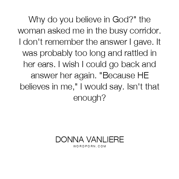 Why do you believe in God?" the woman asked me in the busy corridor. I don't remember the answer I gave. It was probably too long and rattled in her ears. I wish I could go back and answer her again. "Because HE believes in me," I would say. Isn't that enough?