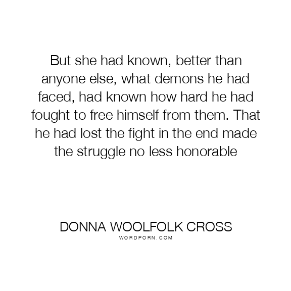But she had known, better than anyone else, what demons he had faced, had known how hard he had fought to free himself from them. That he had lost the fight in the end made the struggle no less honorable