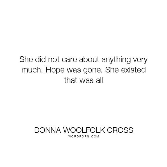 She did not care about anything very much. Hope was gone. She existed that was all