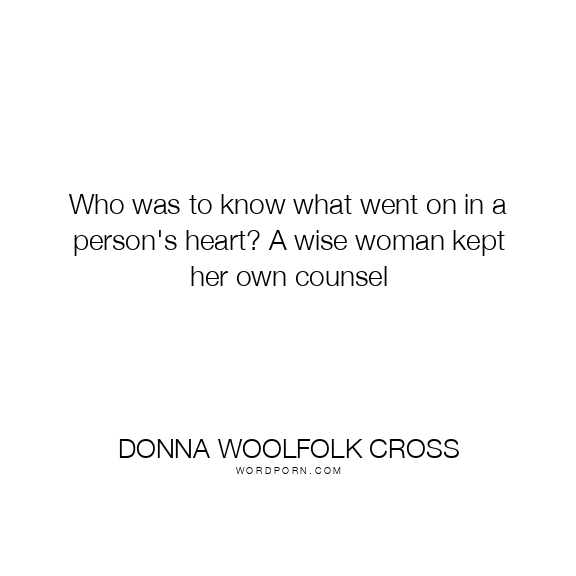 Who was to know what went on in a person's heart? A wise woman kept her own counsel