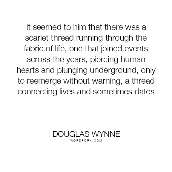 It seemed to him that there was a scarlet thread running through the fabric of life, one that joined events across the years, piercing human hearts and plunging underground, only to reemerge without warning, a thread connecting lives and sometimes dates