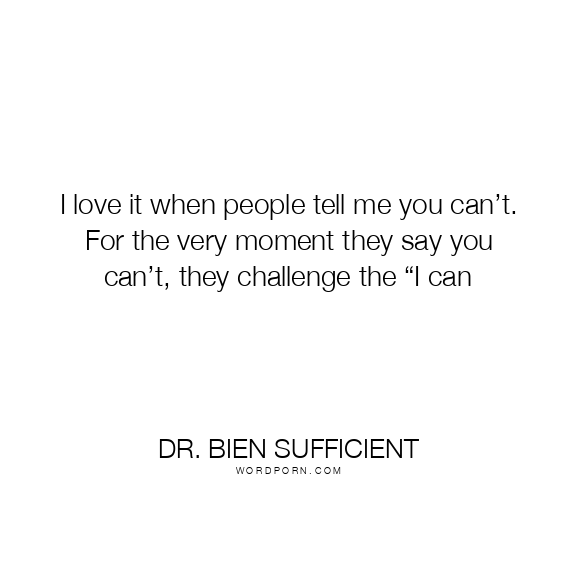 I love it when people tell me you can’t. For the very moment they say you can’t, they challenge the “I can